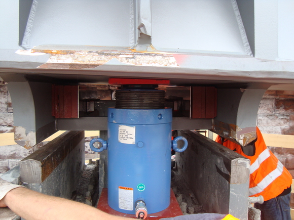Stahlverbundbrücke im Taktschiebeverfahren (~6.000 to Stahl), Statische Berechnung der Verschublager. Mitwirkung bei der Projektabwicklung als Montageingenieur.